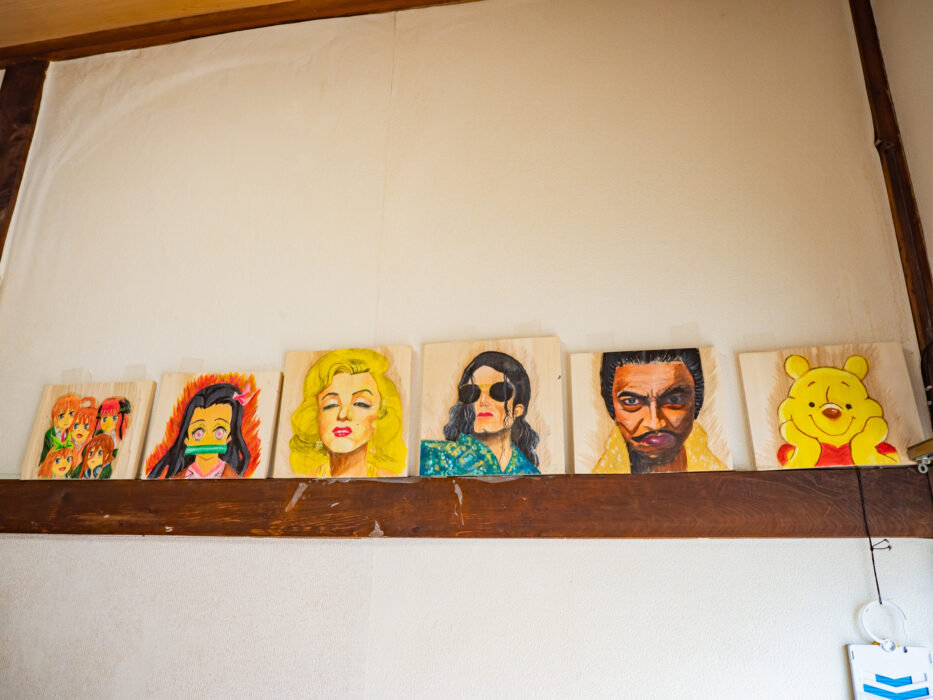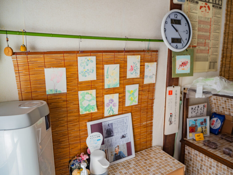 さりげなく綺麗な絵が展示されていたり、新聞の切り抜きがあったり。