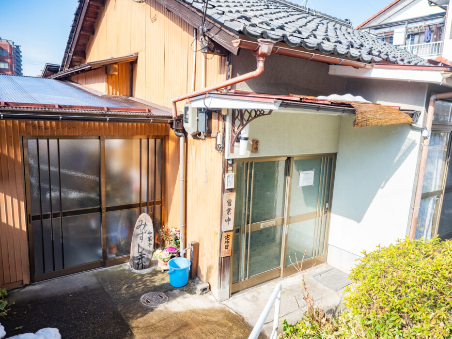 おはぎ屋さん みずしまは、東舞鶴の北浜町、与保呂川に面したところにあります。