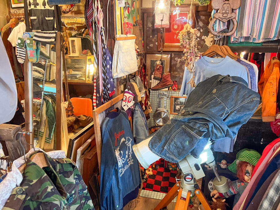 腹ごしらえにたこ焼きを注文し、焼いてもらっている時間で古着屋さんを楽しむということができ、待ち時間も苦になることはないでしょう。特に90年代の古着ブームを知っている世代の方からすれば、もしかすると当時買えなかったあの一品が見つかるかも? という期待も込みです。