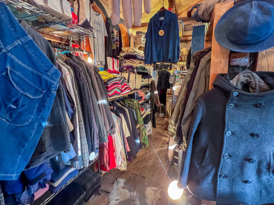 店内はところ狭しと衣類や雑貨が並んでいます。