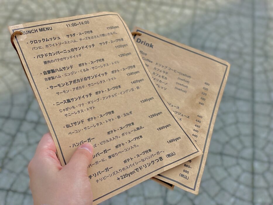 お店の方からクラフト紙のメニューを受け取って、何を注文しようか悩みつつ…