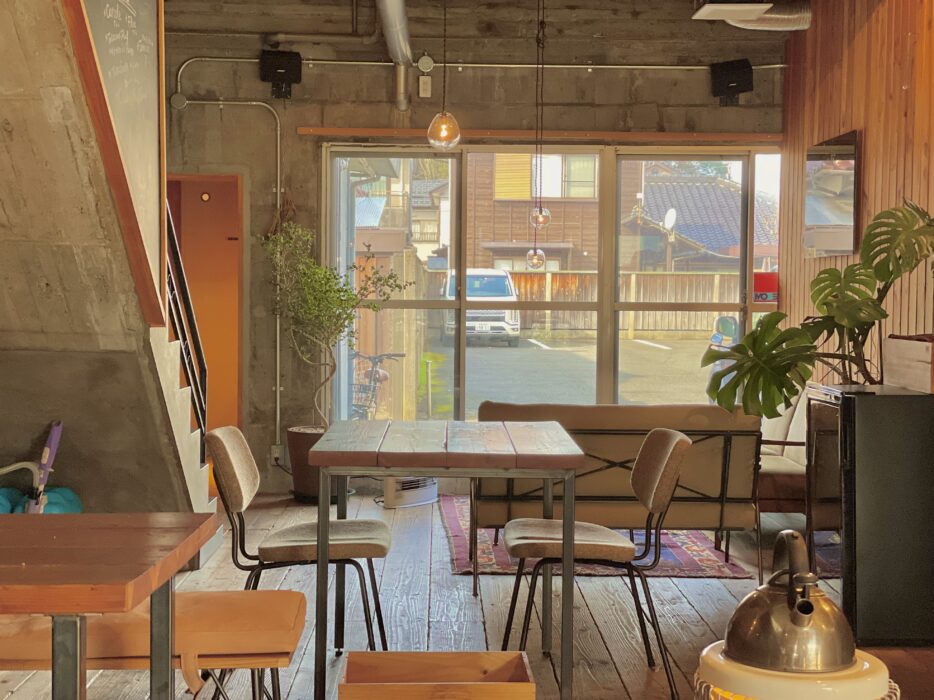 時代を感じるコンクリート建造物の1階が改装されてカフェになっています💡