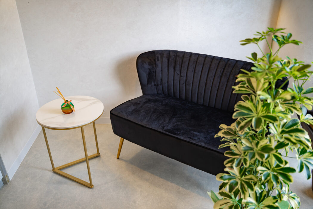 一人ずつ順番の施術のため、待合はこちらで。あらかじめ予約をしておくとスムーズです。