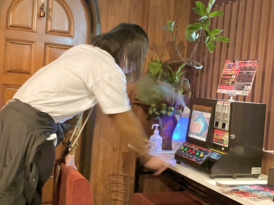 お店の入口付近にあったデジタルスロット機にハマるメンバーの写真をお届け📸