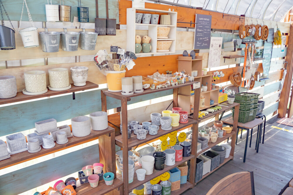 店内に入ると、寄せ植え用のお洒落な容器や数多くの多肉植物が出迎えてくれます。
