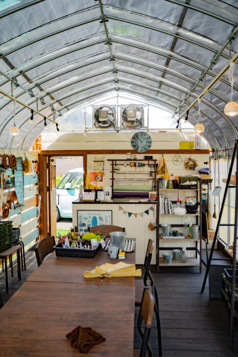 中央のテーブルを使って、寄せ植え会なども定期的に開催されているとのことです。