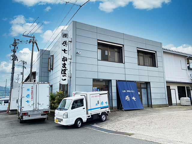嶋七は西舞鶴漁港のすぐ近くに工場があります。工場でもかまぼこの販売はされていますが、御蒲鉾 ひら天 ごぼう天以外の商品は予約制で作り置き直売はされていないので、お求めの際は必ず事前予約をしましょう。