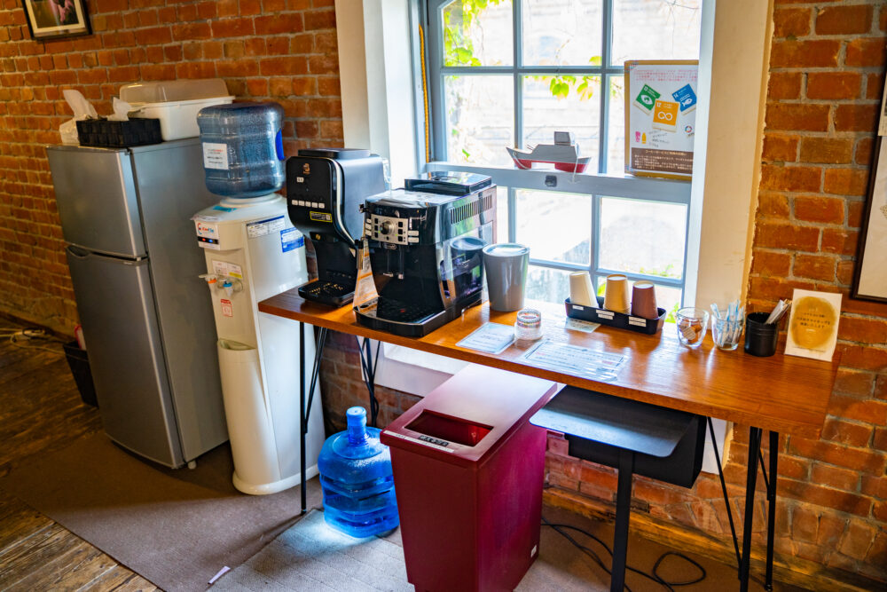 会員であれば、こちらのスペースでコーヒー、ミネラルウォーターを無料でいただくことができます。