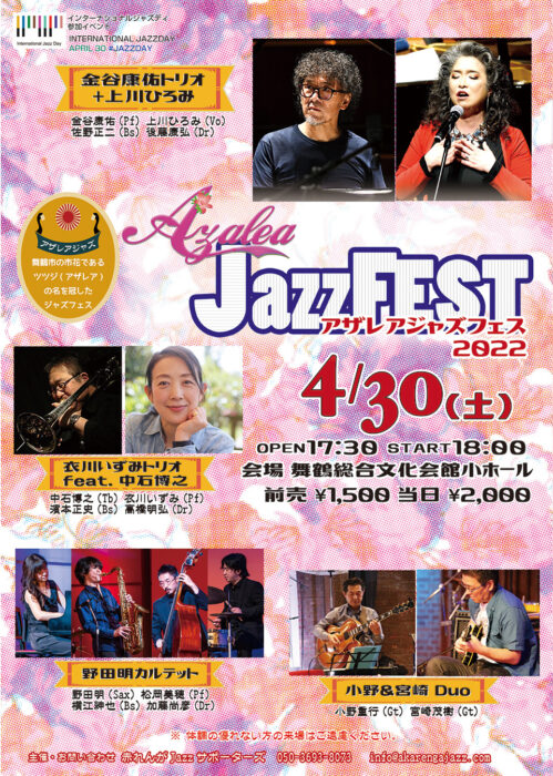 舞鶴でも、舞鶴の市花であるツツジ(アザレア)を冠したジャズイベントという形で、舞鶴、北近畿のミュージシャンを中心に親しみやすいジャズイベントをお届けします。
