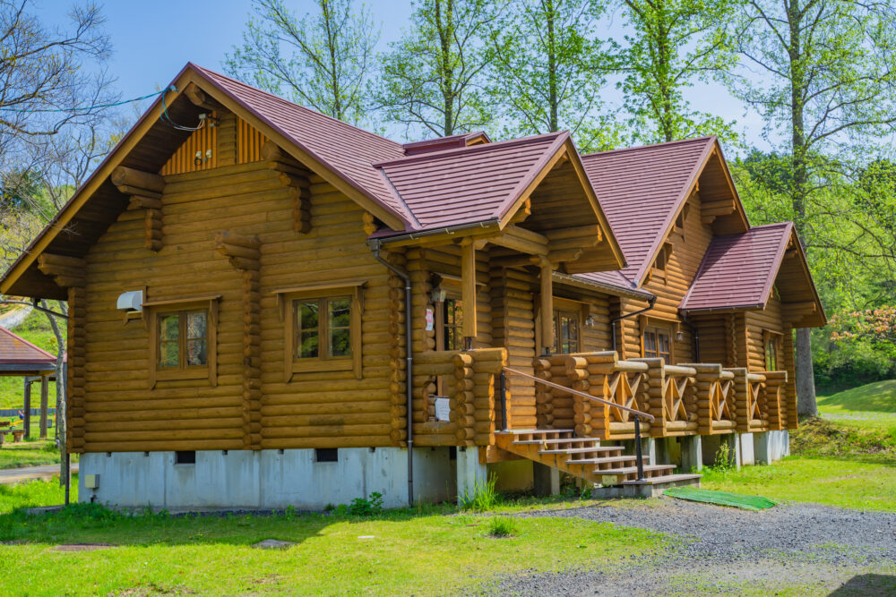 宿泊施設その1。この棟しかないのですぐ予約が埋まってしまうほど人気のログハウスですが、こちらでBBQと宿泊ができます。