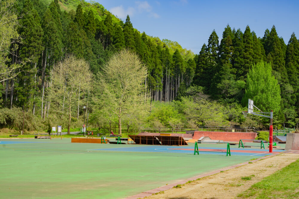 そのさらに奥まで進むと、スケートボードやバスケットボールの練習ができるスポーツエリアが見えます。