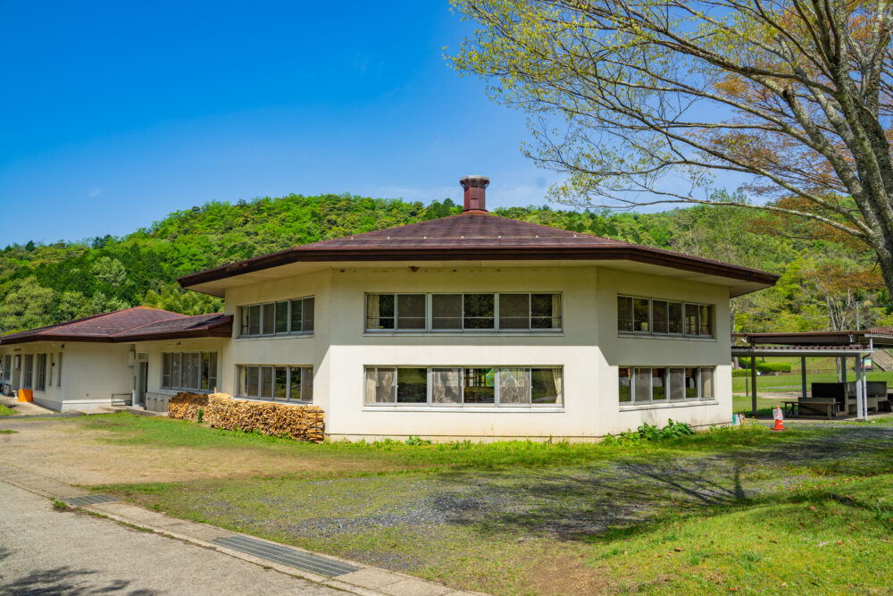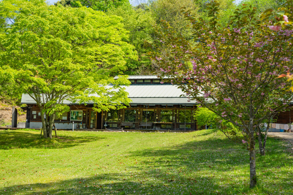 宿泊施設その2。団体客向けのコテージです。こちらは主に合宿やイベントなどで使われます。写真右側にある炊事場では、アウトドアお料理教室なども開かれることが多いです。