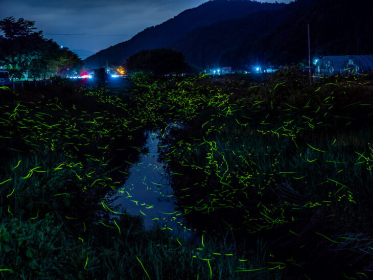 この記事に掲載しているホタル写真は筆者が与保呂川で撮影したものですので、これを見て溜飲を下げてもらえると幸いです!