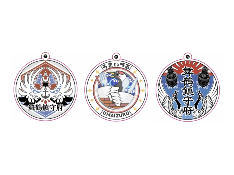 舞鶴鎮守府をイメージにしたロゴ-MAICHIN-や-SOKAKU-、美味しいものが集う街と舞鶴から作った造語の-UMAIZURU-のアクリルキーホルダーです。