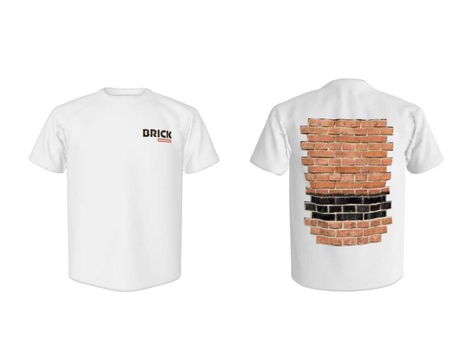 全面の「BRICK」ロゴにも同様に赤れんがのテクスチャを使っています。