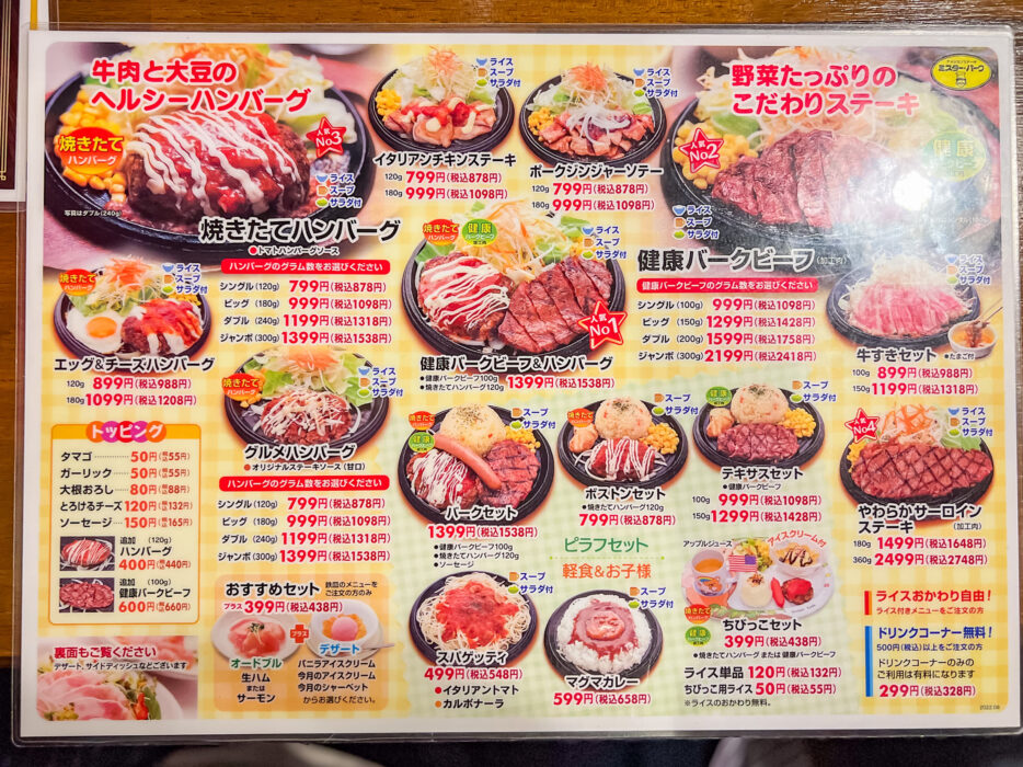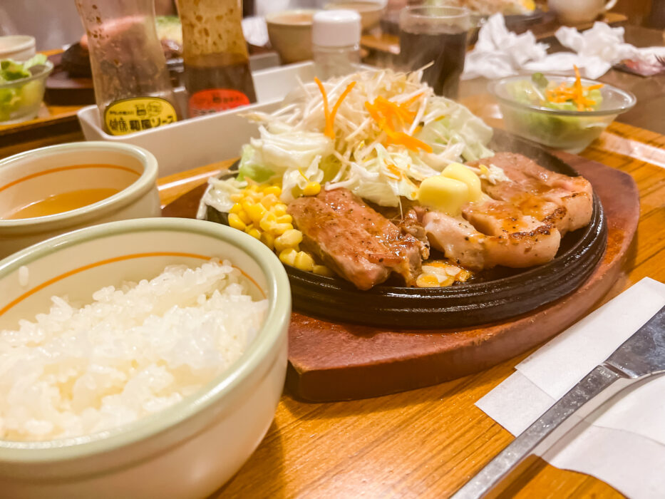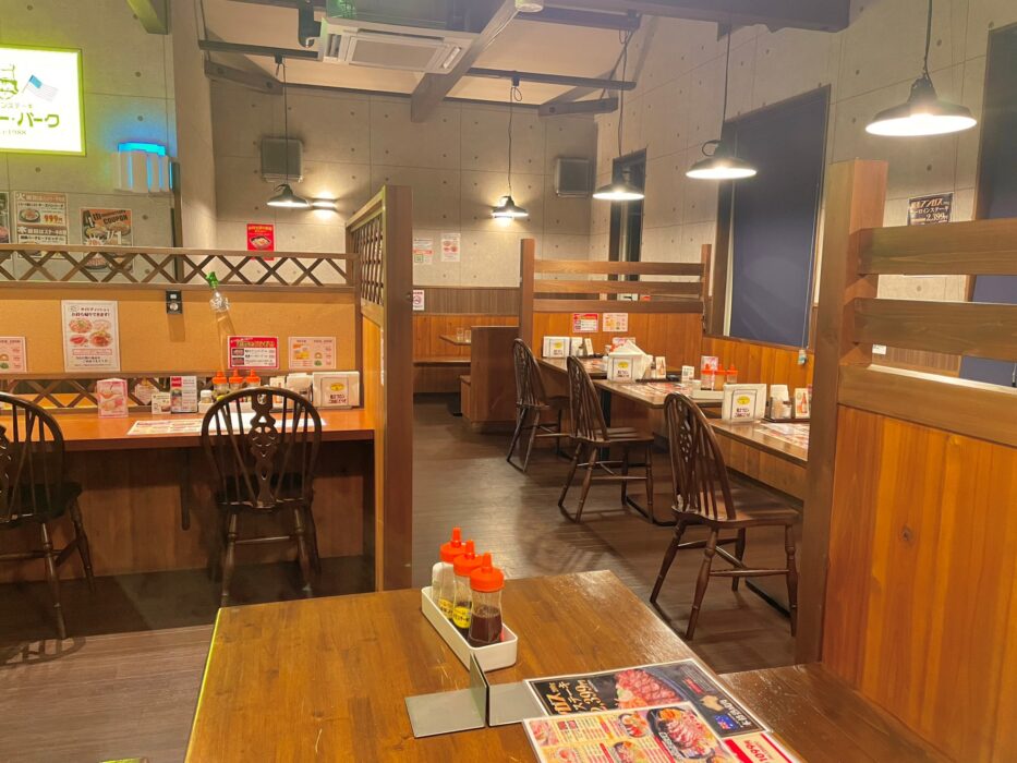 店内はオーソドックスなファミリーレストラン風ですが、店内からは香ばしいお肉とソースの匂いが漂い、お店に入ってすぐから食欲をそそります。