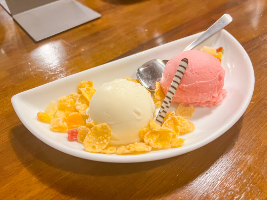 野菜の量やサラダ、ライスのことを考慮したサイズになっていると思われ、ちょうどいい満足感を得られると思うのですが、そうなると必須になってくるのはデザートの存在。