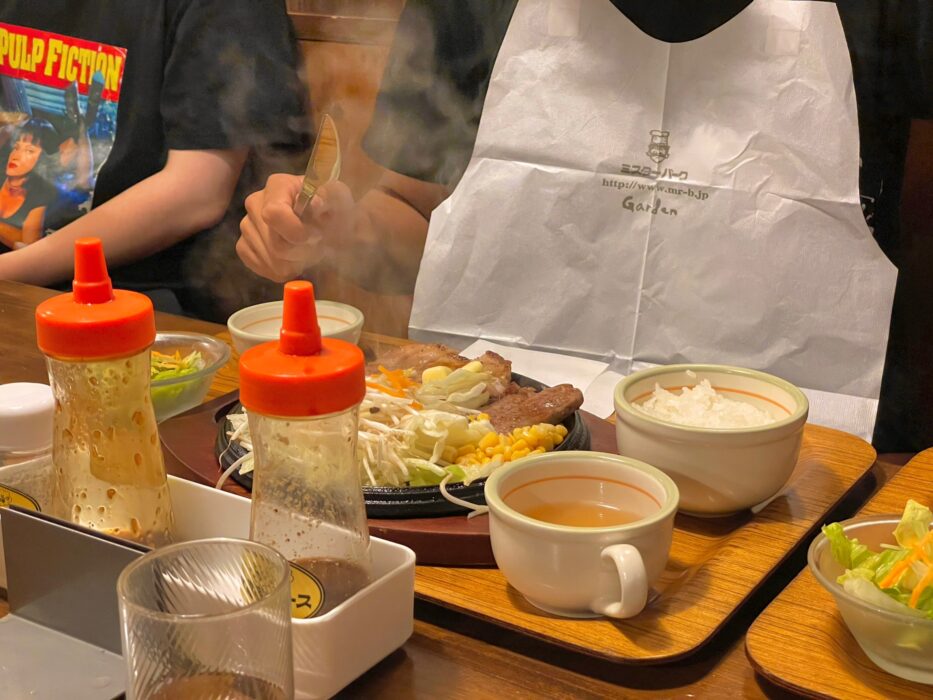あと、これは写真が撮れなかったのですが料理が届く際、鉄板は油やソースが飛び散らないよう銀の蓋で覆われています。この場合「覆われる」って表現正しいのか。「被さる」が正しいのかわからないので誰か僕にこの場合の日本語を教えてください。