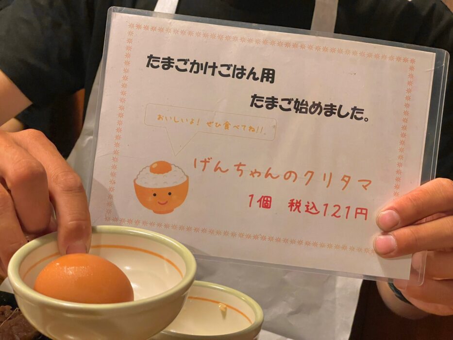 ちなみに、ご飯はおかわり自由、それに加え、店舗独自? のオプションでたまごかけごはんに変更することができます。