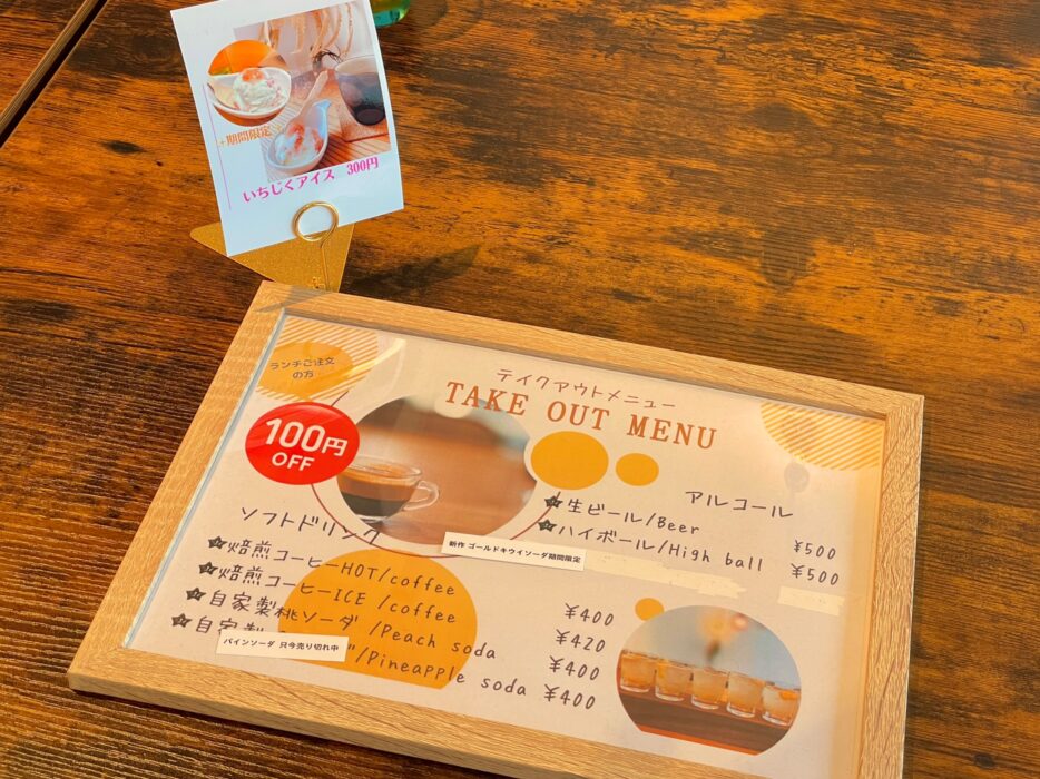 カフェ、アルコール。テイクアウトも可能です。デザートはシーズンによって変わるようです。