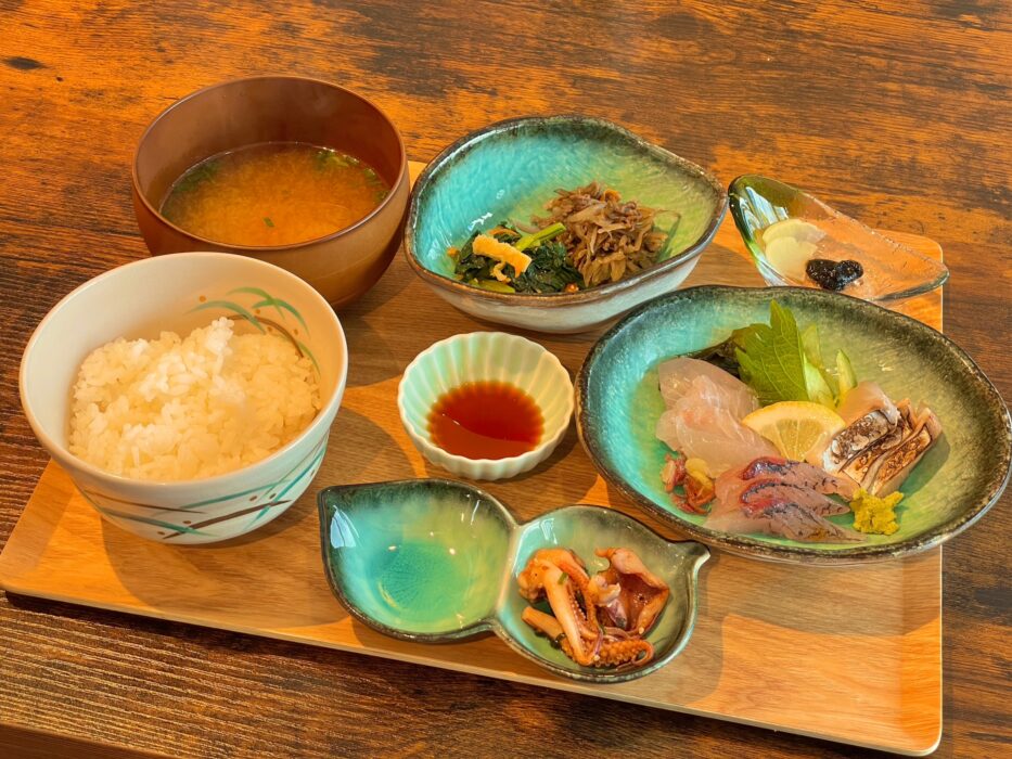 メニューが固定なので、ランチセットを頼むだけでオーダー終了です。現在は海鮮ランチとのことで、旬のお魚を使った定食メニューでした。