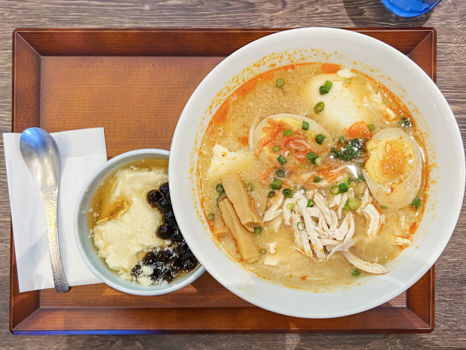 豆漿鶏湯麺(トウジャンジータンメン)。豚骨スープっぽい見た目ですが、驚くほどあっさり。あと煮卵が見た目の倍くらい味が濃くて嬉しい。
