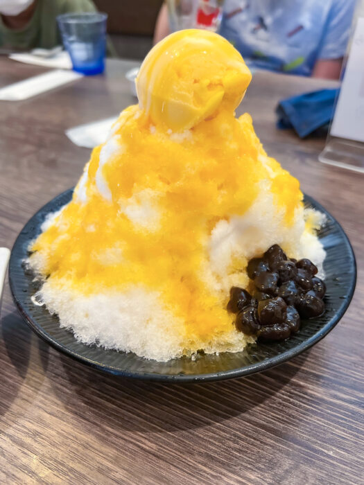 そして最後に台湾かき氷(マンゴー)。もうそのまんまマンゴー。アイスもマンゴー。結構量が多いので、最終的にみんなでちょっとずつ摘みました。