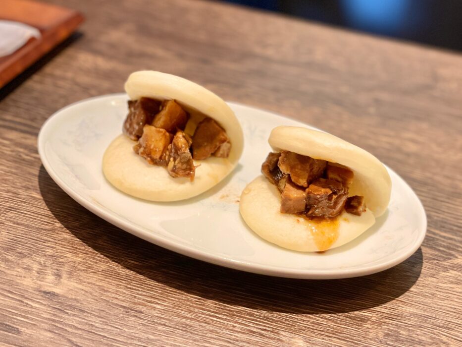 台湾式ハンバーガーこと「刈包(グアパオ)」。小ぶりで食べやすいです。