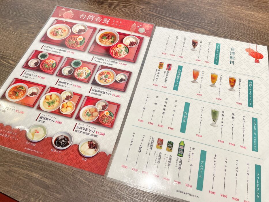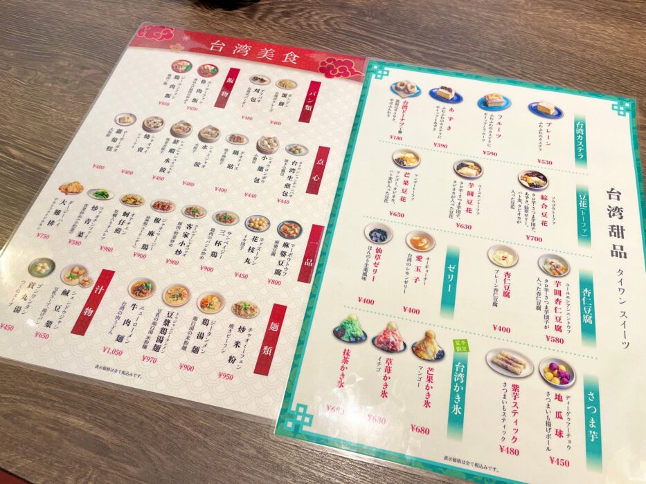 甜点では、台湾カフェと銘打ったお店ですが、カフェメニューだけでなく飲食メニューもかなり豊富です。