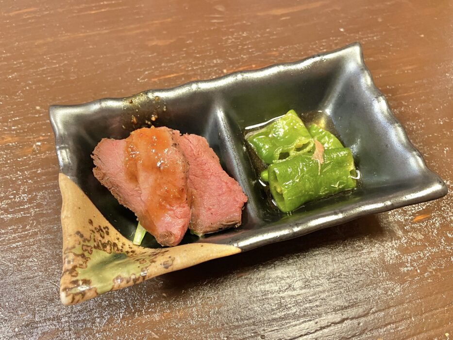 お通しはローストビーフと万願寺の煮物でした✨