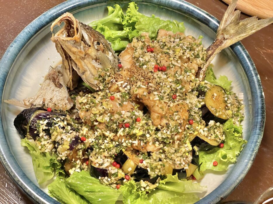 こちらは鯵の中華風唐揚げ!見た目の迫力がすごい✨