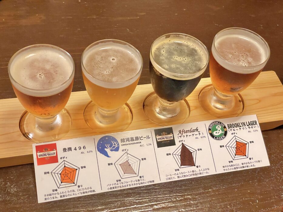 各ビールの特徴が書かれた説明を読みながら味を楽しめます💡