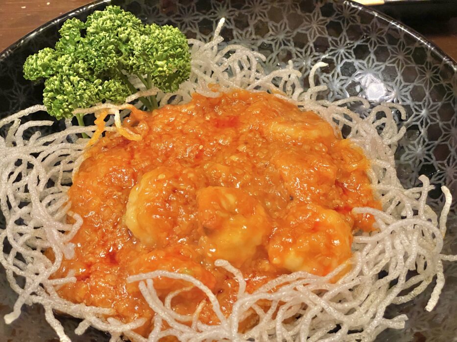 おっきなエビに絡みつくチリソースが堪らん…
