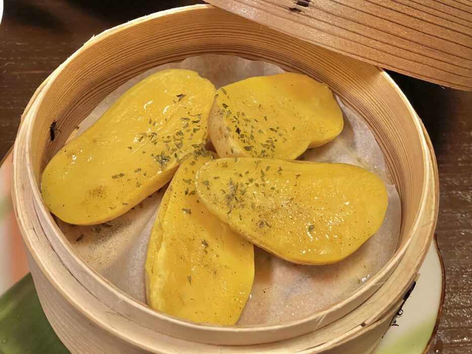 夏らしくナスやカボチャが添えられてるのが彩り豊かで素敵。