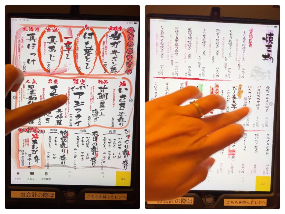 注文は手元のタブレットで💡