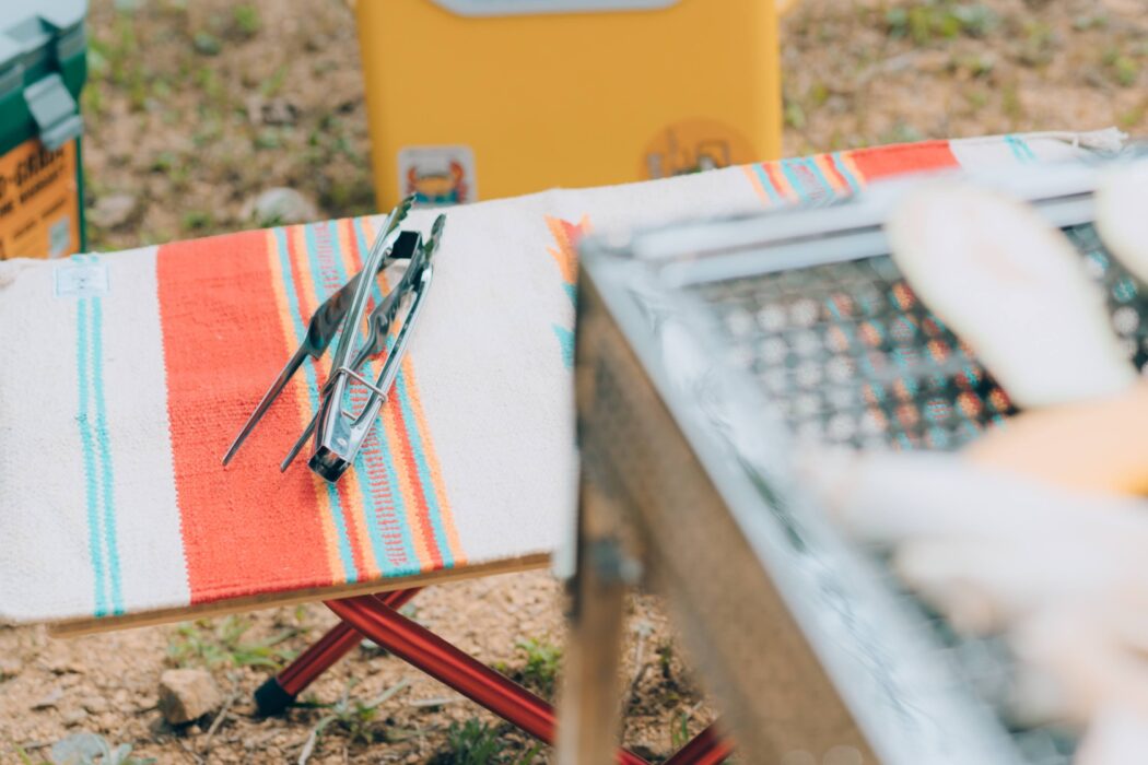 早速設営開始!今回はすでに設置されているタープやテントをお借りしたので、スッと準備することができました✨️