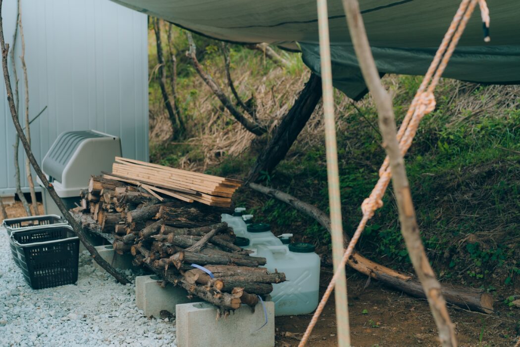 場内には備え付けのタープやテント、手洗い場、トイレに薪置き場等が設置されています🏕