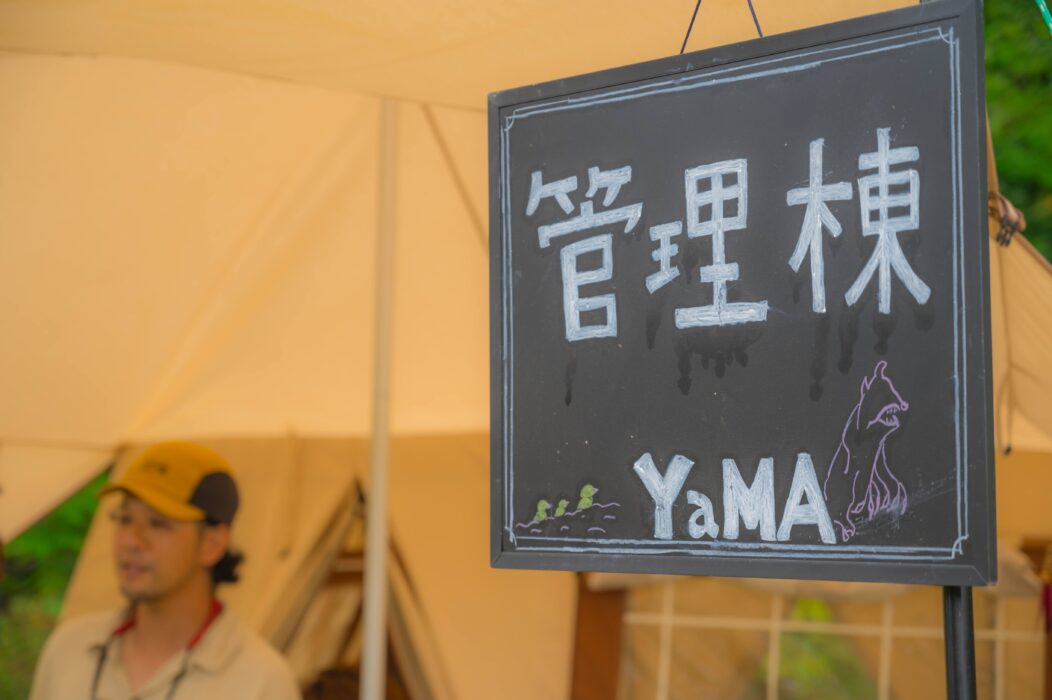 管理棟前のテントには『YaMA』のフライヤーが🏕