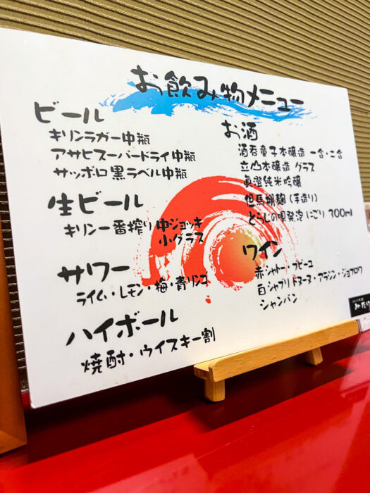 もちろんお酒も楽しめます。ソフトドリンクもありますので、ハンドルキーパーの方、お酒を飲めない方も安心。