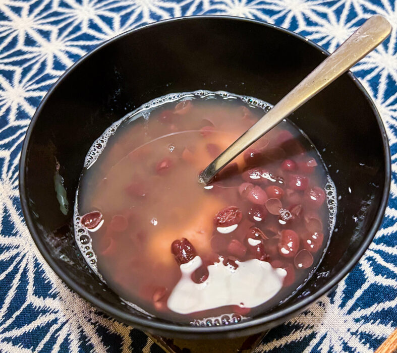 この時点で結構お腹いっぱいでしたが、このぜんざいもなかなかのボリューム。もうちょっとお腹に余裕を残しておけば良かった…!