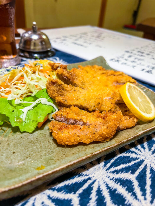 わらじカツ風のとんかつ。とんかつ自体も美味しいのですが、ソースの味に結構びっくりするかも?