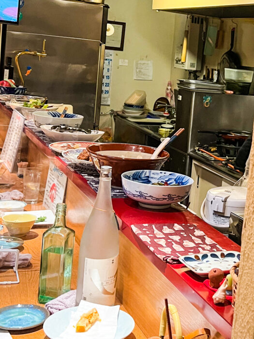 カウンターにはその日の様々なおばんざいが並んでいます(トリミングの関係上画像荒くてごめんなさい…)