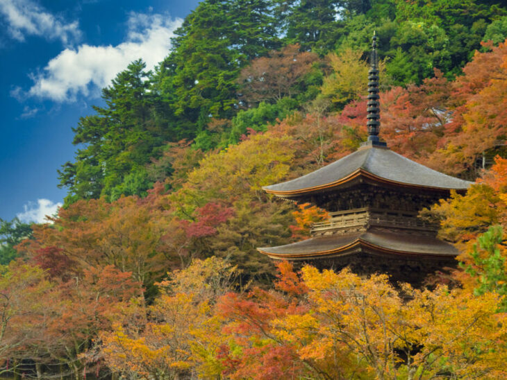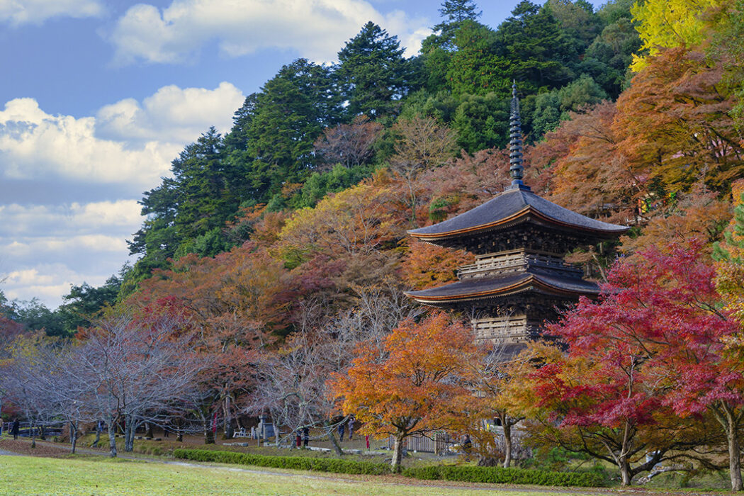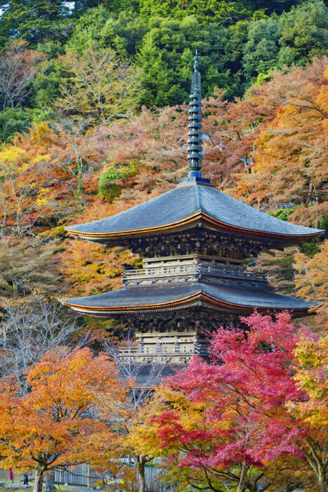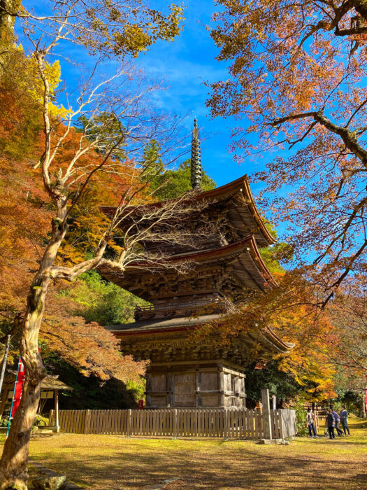 アイキャッチにも使っている紅葉に囲まれた三重の塔。これを目当てに多くの方がカメラを持って訪れています。
