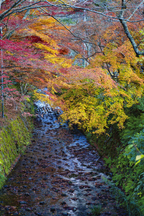 入り口から境内と散歩道を分ける小川に連なるように紅葉が並んでおり、歩きながら目を楽しませてくれます。