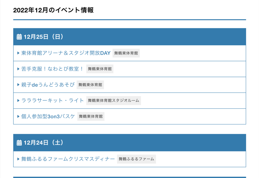 イベント情報を毎月最初の更新としてブログ記事上に掲載していましたが、先月の情報を見るために都度戻らなければならないのが面倒だったり、とりあえずスケジュールだけ確認したいという声がありましたので、12ヶ月分のイベントスケジュールを1ページ内で閲覧できるようにしました。