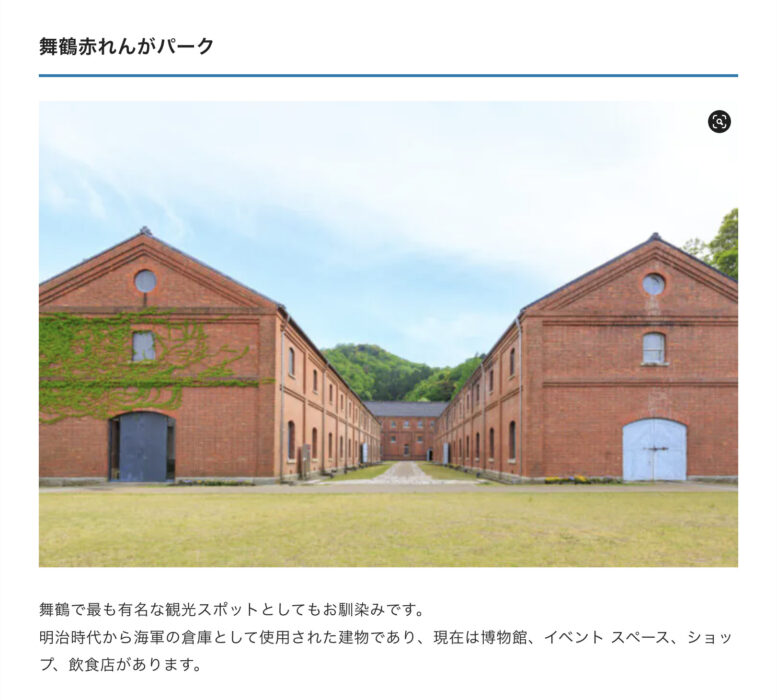 観光スポットをできるだけすぐに知ることができる&舞鶴なびで紹介した該当観光スポット記事をワンセットで確認できますので、情報がわかりやすくなるかと思います。