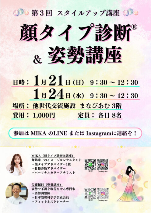 講師は、イメージコンサルタントのMIKAと姿勢調整師の佐藤拓巳。