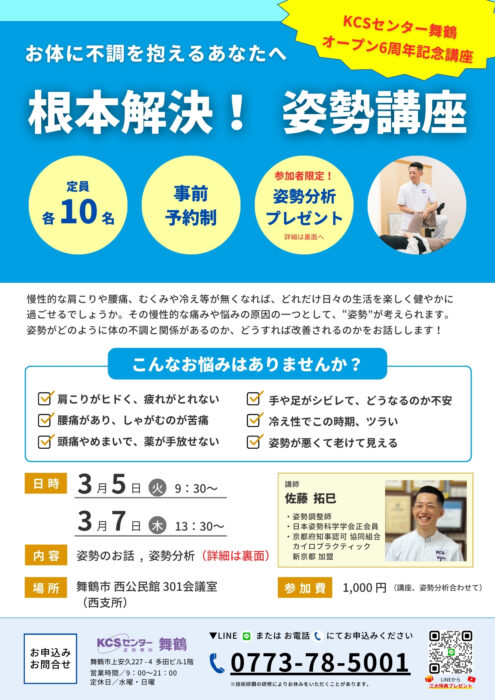定員:10名 参加費:1,000円(講座・姿勢分析を含む)