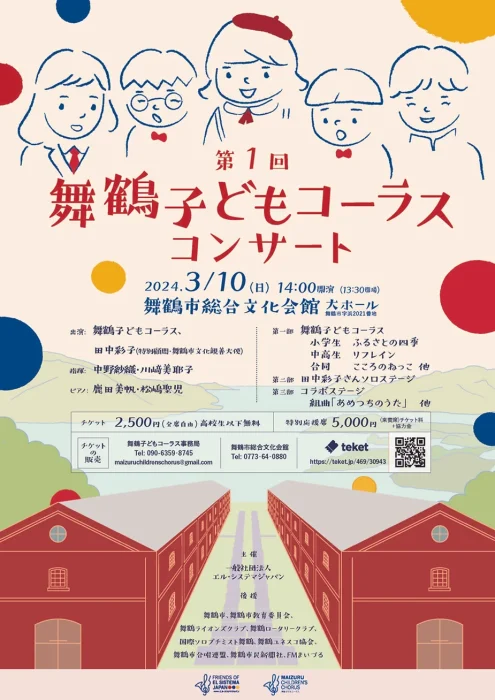舞鶴子どもコーラスは、2022年6月の発足して以来、舞鶴市内外の様々なイベントに呼んで頂き、ステージを重ねてきました。この度、自主公演としては、初めてとなる演奏会を、2024年3月10日(日)午後、舞鶴市総合文化会館大ホールにて開催します。