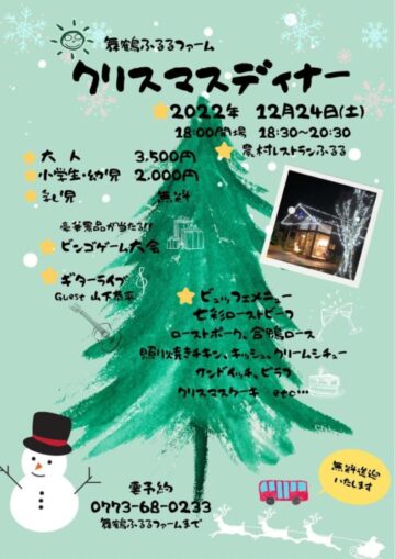 2022年12月24日に、舞鶴ふるるファームにてクリスマスディナーが開催されます。 ■要予約 …